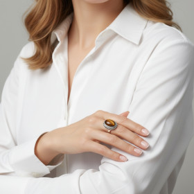 Bagues en argent avec pierre œil-de-tigre pour femme