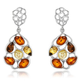 L’avantage de l’ambre c’est qu’elle se décline dans de nombreuses teintes et couleurs, il est donc possible au sein du même bijou d’explorer tout un panel de possibilités et de trouver des tons qui s’harmonisent parfaitement.