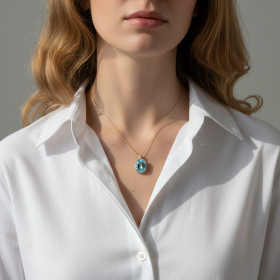 Enfin, nous vous proposons des pendentifs topaze bleue en vermeil. Ce métal précieux réchauffe délicatement le bleu de la pierre.