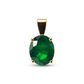 Nos pendentifs émeraude en or adoptent tous les styles. Pour un collier sobre et délicat, choisissez un pendentif avec une seule émeraude. La pierre trône ainsi parfaitement dans votre bijou et révèle toute sa beauté. Les émeraudes solitaires sont taillées en forme de poire, de rond, de carré, de rectangle… Elles sont plus ou moins volumineuses, de quelques dixièmes de carat à plus de 6 carats. Les pierres sont enserrées tantôt par des griffes en or, pour un style classique et distingué, tantôt par un serti clos, pour un modèle de bijou moderne et original. Pour un bijou des plus luxueux, vous pouvez également choisir un pendentif dont la bélière est ornée de diamants.