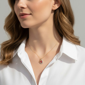 Que ce soit en pendentif ou en collier, le rubis est le bijou parfait pour exprimer l’amour et la passion. Les créations de Trabbia Vuillermoz en or 18 carats, ornées de rubis et de diamants blancs, subliment chaque cou féminin tout en portant une symbolique forte. Ces bijoux incarnent l’élégance et l’intensité du sentiment amoureux, notamment grâce à leur pierre rouge sang symbole de passion symbole de feu et de sang, éléments essentiels dans l'identité des bijoux Trabbia Vuillermoz.