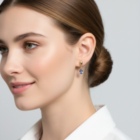 Nous disposons dans notre stock de plusieurs modèles de boucles d’oreille saphir qui partagent la vedette avec un ou plusieurs diamants. Les diamants apportent, quelle que soit la forme de la boucle d’oreille, de l’éclat et de l’intensité. Ils sauront mettre en valeur le saphir en l’accompagnant avec discrétion ou en l’escortant plus généreusement.