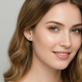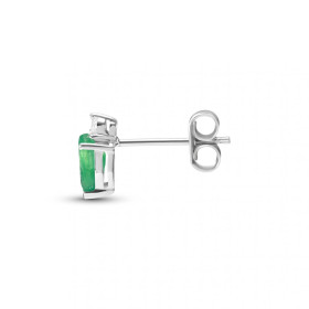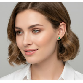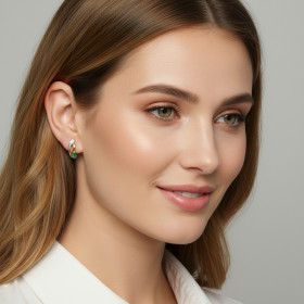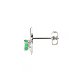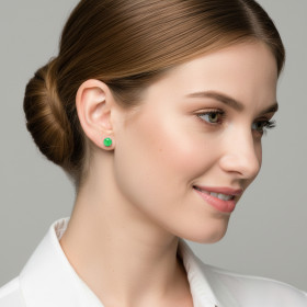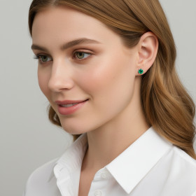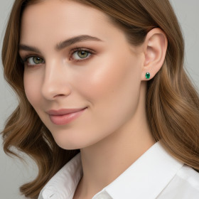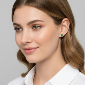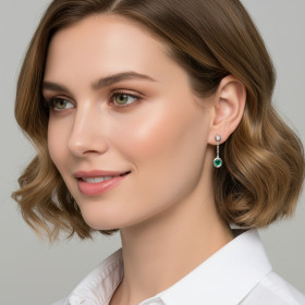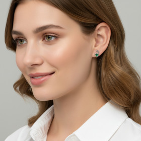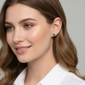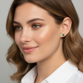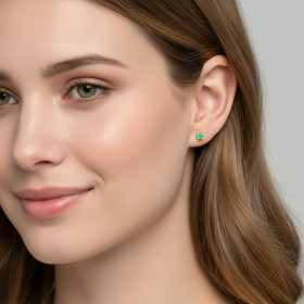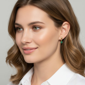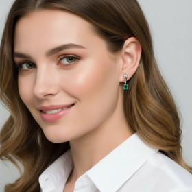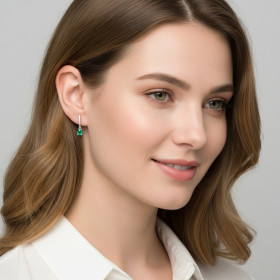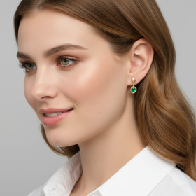 Les boucles d’oreilles adoptent différents styles. Vous pourrez ainsi opter pour des clous d’oreilles, sobres et élégants. L’émeraude est alors sertie de griffes ou enserrée dans un serti clos, moderne et raffiné. La pierre peut prendre différentes formes : ronde, ovale, voire triangulaire, carrée ou rectangulaire. L’émeraude s’invite aussi dans les pendants d’oreilles. Le plus souvent, elle est taillée en poire ou en navette ; la boucle ressemble alors à une goutte brillante qui oscille le long du cou. Les demi-créoles sont aussi de la partie. Les émeraudes sont alors souvent rejointes par d’autres pierres précieuses comme des diamants ou par des pierres fines, comme l’oxyde de zirconium. L’émeraude se plait aussi grandement au côté d’une perle, ronde, lisse et blanche.