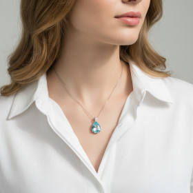 Pendentif Or Blanc 750 Topaze bleue traitée poire 16x12mm et diamants