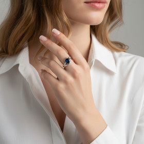 Bague Or Blanc 750 Saphir de Ceylan Ovale 6x4mm et Diamant