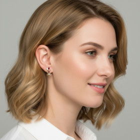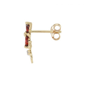 Boucles d'oreilles Pendantes Fleurs Or Jaune 375 Grenat et Diamant
