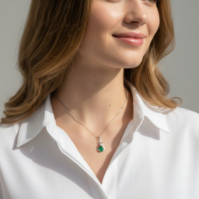Pendentif Or Jaune 750 Emeraude Ovale 9x7mm et Diamant