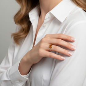 Pendentif Or Jaune 750 Citrine Ovale 20x15mm et Diamants
