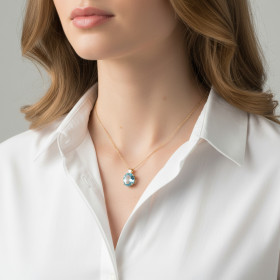 Pendentif Or Blanc 750 Aigue Marine Ovale 7x5mm