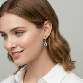 Pendentif Or blanc 375 Topaze Bleue traitée Poire 5x3mm et Diamant