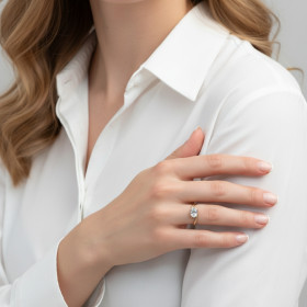 Bague Moderne Or Jaune 750 Emeraude Ovale 8x6mm et diamants