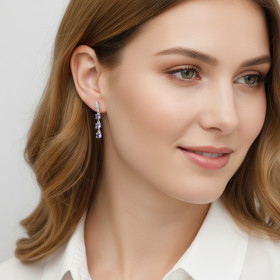 Boucles d'oreilles Pendantes Asymétriques en Or Jaune 750 Rubis et Diamant