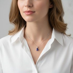 Pendentif Or Blanc 750 Tanzanite Poire 9x7mm AAA et diamants