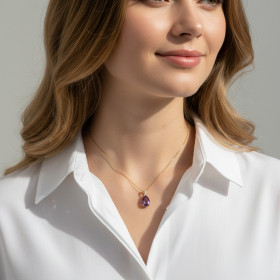 Pendentif Or Jaune 750 Améthyste Poire 12x8mm et Diamants