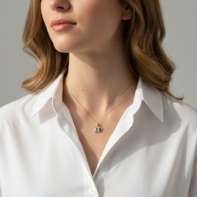 Pendentif Or Jaune 375 Topaze Carrée 6x6mm et Diamant