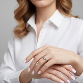 Solitaire Aigue Marine Ovale 6x4mm et Diamant en Or Blanc 375