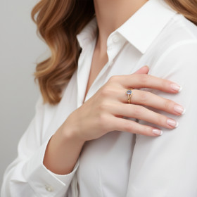 Bague Topaze bleue traitée Coussin 10mm et Diamant Or Jaune 375