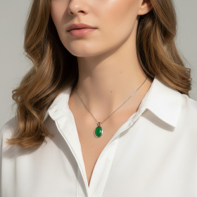 Pendentif Or Blanc 750 Emeraude Ovale 10x8mm et Diamant