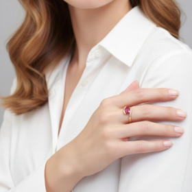 Bague Or Jaune 750 Rubis Ovale 8x6mm et Diamant
