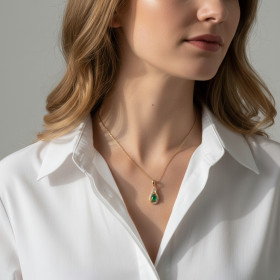 Pendentif Or Jaune 750 Emeraude poire de 6x4mm et Diamants