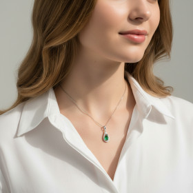 Pendentif Or Blanc 750 Emeraude poire de 6x4mm et Diamants