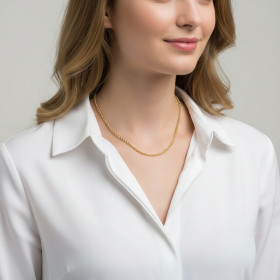 Le collier en or se suffit souvent à lui-même. Il n’a donc pas besoin d’être associé à un pendentif. En effet, les mailles du collier assurent un ornement des plus féminins et harmonieux. Fin, court et discret, il se porte aisément au quotidien, qu’il soit en or jaune ou en or blanc. Parce qu’il reste sobre, vous pourrez l’associer sans mal à vos autres bijoux, en or ou en argent : boucles d’oreilles, bagues, bracelets… Même vos bijoux les plus volumineux peuvent être portés en même temps que votre collier. Certains de nos colliers sont plus larges et trouveront aisément leur place sur un décolleté ou en dessous d’une chemise.