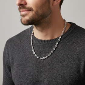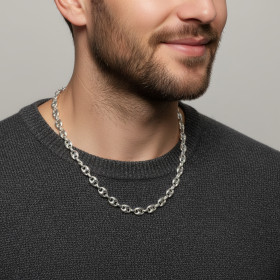 Dans cette collection, vous trouverez des chaînes maille grain de café en argent de différentes longueurs et largeurs. Ces colliers sont faciles à porter au quotidien. Ils se suffisent à eux-mêmes. En effet, ce type de mailles ne s’accompagne généralement pas d’un pendentif. Ces chaînes sont donc des bijoux à part entière, sans artifice aucun, qui plairont particulièrement aux hommes. L’argent est par ailleurs un métal qui s’intègre à n’importe quelle tenue. Sobre et authentique, une chaîne maille grain de café brille autour de votre cou et ajoute une petite touche de sophistication à votre look.