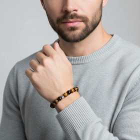 L’œil-de-tigre se reconnait à ses couleurs allant du noir le plus profond aux bruns les plus dorés. En fonction de la lumière qui l’éclaire, ses reflets se modifient et font « vivre » la pierre. C’est une des particularités qui rend l’œil-de-tigre si fascinant. Cette gemme existe dans d’autres couleurs. Quand elle est bleue, elle est appelée œil-de-faucon ; quand elle est rouge, elle prend le nom d’œil-de-taureau. Mais c’est bel et bien quand elle est marron et dorée que l’œil-de-tigre prend toute sa dimension. C’est cette pierre qui est au cœur de notre collection de bracelets en argent.
