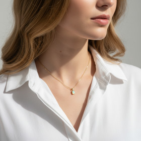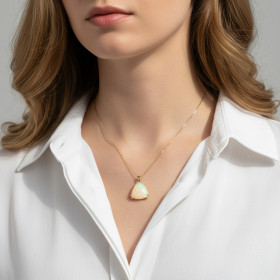 Vous êtes séduit par l’opale et ses reflets colorés et lumineux ? Le pendentif est le bijou idéal pour arborer cette pierre. Mais quel bijou choisir ? Différents critères peuvent vous aider à vous décider pour tel ou tel modèle. Tout d’abord, la couleur de la pierre. L’opale est en effet disponible en différents coloris. Elle est également taillée selon plusieurs formes : rond, ovale, navette, triangle, poire… Choisissez une pierre dont l’aspect général vous convient. Le volume de la pierre est également un critère de choix. Petit ou volumineux, votre pendentif doit correspondre à vos préférences en matière de bijoux et à votre morphologie. Enfin, la couleur de l’or répond elle aussi à vos goûts. Or jaune ou or blanc 18 carats, ce métal précieux sublime dans tous les cas l’opale.