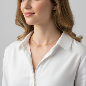 Les colliers câbles sont constitués de maillons jointifs. Il n’y a donc pas d’espace entre les différentes mailles. Ce type de bijou semi-rigide peut être réalisé en mailles serpent, en mailles miroir, en mailles diamantées… La maille oméga est sans doute la plus raffinée. Elle présente un aspect lisse et sphérique qui se suffit à lui-même. Le collier en maille oméga, en or ou en argent, peut en effet se porter seul, sans aucun pendentif. C’est un bijou qui sublime le cou et se montre aussi discret qu’élégant. Il se porte dès lors en toute circonstance, au quotidien comme pour une occasion particulière.