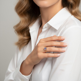 Bague Argent Quartz Rose Coussin 16mm