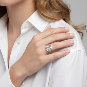 Bague Solitaire Argent 925 Rhodié et Oxyde de zirconium