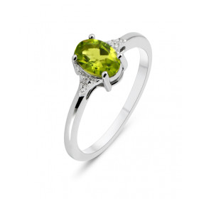 Avec une couleur verte translucide, le péridot est une pierre intense. Ce gemme est également appelé olivine ou chrysolite. Avec sa teinte olive, il se différencie au premier coup d'oeil, du vert émeraude. Cette pierre peut prendre plusieurs formes selon la taille : ovale, rond, rectangle, trillion, carré, poire... Il peut également être rond sans façettes en cabochon. Comme le diamant, le péridot peut se porter en solitaire, en tant que pierre unique. Avec quelle pierre peut-on porter une bague en argent et péridot ? Comme un solitaire accompagné, l'anneau peut être serti d'oxydes de zirconium blancs ou verts, dans un esprit ton sur ton. Il est possible de jouer la carte du contraste avec des pierres fines comme le grenat, la cornaline, la topaze bleue, le quartz fumé, l'oeil de tigre... Des gemmes organiques tels que l'ambre ou la perle sont parfaitement compatibles avec le péridot.