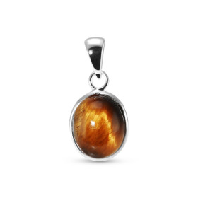 D’autres gemmes présentent cette particularité optique que l’on appelle « chatoyance » en bijouterie. Ce qui les différencie entre elles, c’est leur couleur. Quand la pierre est majoritairement bleue, on parle d’œil-de-faucon ; quand elle tire sur les rouges, on parle d’œil-de-taureau. L’œil-de-tigre, pour sa part, est couleur jaune-brun, des teintes mordorées qui s’étagent en volutes sur toute la surface de la pierre. Elle revêt une apparence tigrée qui renforce encore le caractère inédit de votre bijou. Et quand, sous la lumière, votre pendentif bouge à votre cou, l’œil-de-tigre semble prendre vie.