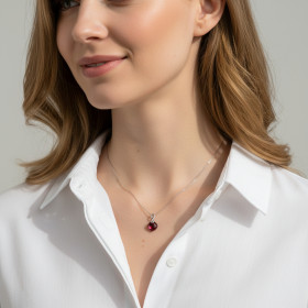 Pendentif Grenat Coussin 8mm Or Blanc 750