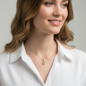 Pendentif Poire Or blanc 375 Citrine et Diamant