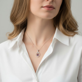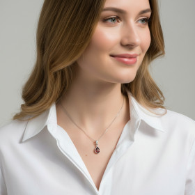 Pendentif Poire Or blanc 375 Grenat et Diamant
