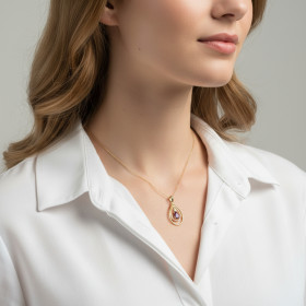 Pendentif Poire Or jaune 375 Améthyste et Diamant