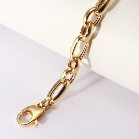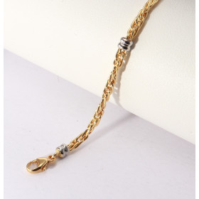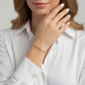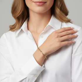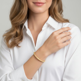 (79 bijoux)Métal emblématique et indémodable, l’or jaune traverse les années sans prendre une ride. Fin et souple sous forme de chaine, le bracelet suit les mouvements du poignet avec légèreté. Rigide, le bracelet jonc rigide ou manchette est dans l’air du temps. Le bracelet or ne se porte plus forcément avec un collier or coordonné de la même maille. Aujourd’hui, on ose dépareiller ses parures pour un look plus moderne ! Le bracelet femme s’accorde avec les différents ors ou métaux : l’or blanc, le plaque or ou même un bracelet argent.