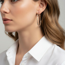 Mais si vous rêvez d’une allure plus féminine et exotique, dans ce cas, appréciez notre sélection de boucles d'oreilles créoles composées de deux ou de trois anneaux entrelacés. Certains modèles constitués d’une partie centrale en or blanc texturé vous séduiront.