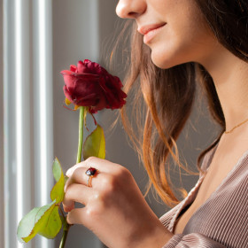 Avec le diamant solitaire, la bague rubis est la bague de fiançailles par excellence. D’abord parce qu’elle fait partie des pierres précieuses, comme l’émeraude, le saphir et le diamant, ensuite parce qu’elle offre cette couleur rouge synonyme d’amour et de passion. Rien de mieux pour enflammer le cœur de la femme que l’on aime. Sertie d’or blanc, elle scintille de mille feux, grâce à ce contraste entre la pierre et le métal. Pour autant, le rubis s’associe aussi parfaitement à l’or jaune, pour des compositions exubérantes et distinguées. Il trône seul sur les anneaux ou épaulés de diamants. Les trilogies de rubis sont aussi les bienvenues.