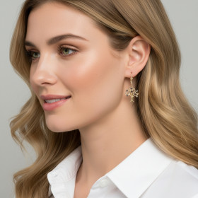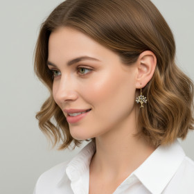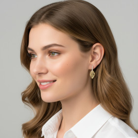 Dans un style ancien et vintage, les boucles d’oreilles feuilles ont une réelle inspiration art déco. Depuis un siècle, ce style de bijoux pour femmes garde une modernité avec un mélange de formes géométriques et végétales. Les boucles d'oreilles feuilles peuvent prendre la forme de laurier, d'érable, de palmier miniature et bien d'autres encore, vu la grande diversité de la flore. Les bijoux peuvent être sertis de pierres fines, de perles de culture, de cristaux, de strass ou de pierres précieuses. On aime aussi bien les pierres neutres que colorées comme la topaze, l'oxyde de zirconium, le lapis lazuli, l'onyx, l'hématite, le péridot, l'agate... La feuille peut se porter en clou d'oreilles. Avec la tendance des earcuffs, la boucle d'oreille peut monter du lobe vers le pavillon, avec un motif couronne de lauriers. En boucles d'oreilles pendantes, le bijou peut être ajouré, martelé ou avec des motifs en forme d'arabesque ou de torsade à l'intérieur. Ces bijoux pour femme se portent quelle que soit la génération, grâce à son côté indémodable.