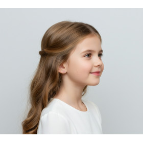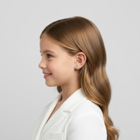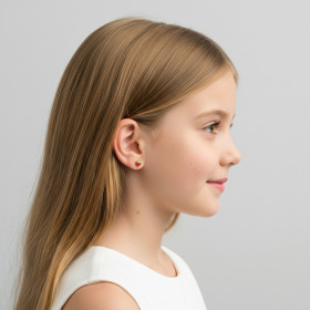 Pour une fille, il est essentiel de choisir une paire de boucles d'oreilles, à la fois légère et de petite taille. On privilégie des clous ou des puces d'un petit diamètre. Il est possible d'opter pour des motifs enfantins de forme ronde comme un poisson, un papillon, une coccinelle ou une fleur. Les boucles d'oreilles peuvent avoir une touche de couleur avec de l'émail pour plaire aux plus jeunes. Toutes les couleurs sont permises : rose, rouge, bleu, vert, jaune... L'émail peut colorer l'or 375 ou 750, pour un résultat durable.