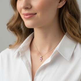 Comme d’autres pierres, l’oxyde de zirconium se décline dans de nombreux coloris. Cette pierre artificielle aux allures de diamant vient ici orner des pendentifs roses étincelants. Monté sur de l’argent, l’oxyde de zirconium laisse voir ses facettes et ses différentes nuances de rose qui se modifient au gré des variations de lumière.