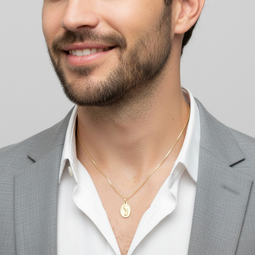 Voici une belle médaille de baptême montrant le profil de la Madone auréolée. Cette représentation certes traditionnelle de la Vierge révèle néanmoins un côté moderne grâce au haut travail de joaillerie réalisé. On aime particulièrement le soin apporté aux détails qui permettent d'apprécier les traits du visage de la Madone. La plaque de forme ovale livre un fond satiné sur ses deux faces. Le contour diamanté du bijou procure un effet brillant qui ne passe pas inaperçu. Faite en or jaune 18 carats, la médaille mêle élégance et sobriété.