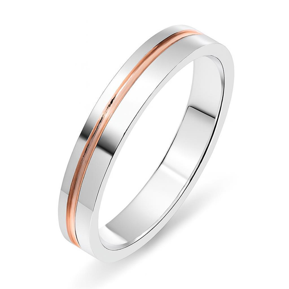 Une alliance ne se choisit pas à la légère, elle est le reflet de votre union. Le vôtre étant unique, choisissez cette alliance à l'allure authentique. Composée principalement en or gris palladié, elle est ornée d'un motif encastré en or rose. Un filet en or rose se dessine au centre de l'anneau, faisant tout le tour et sa tonalité en couleur relève la brillance du métal clair. Cette demi alliance se dénote par son aspect émerisé tout en contraste avec son intérieur satiné et plat.