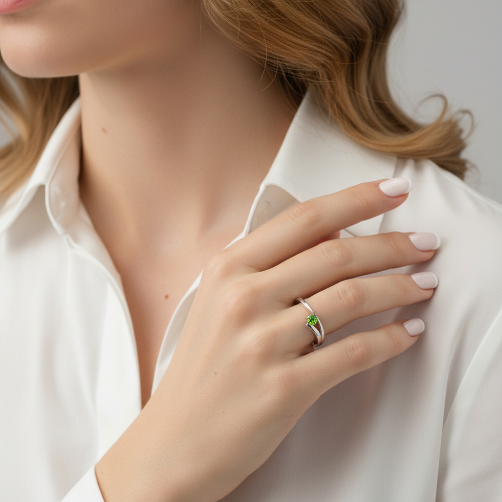 Bague Argent Péridot Rond 3mm - Ref : 28280