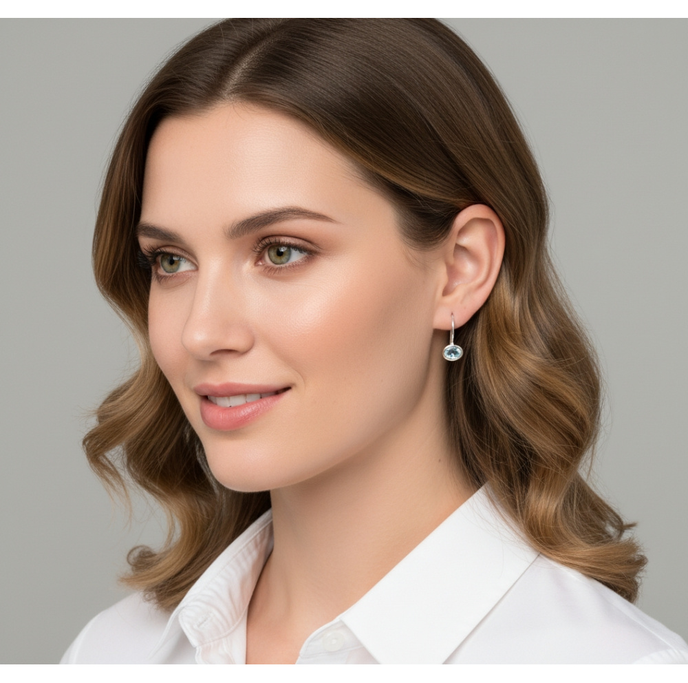 Boucles d'oreilles Argent 925 Topaze Bleue serties de pierres ovales de 7x5mm