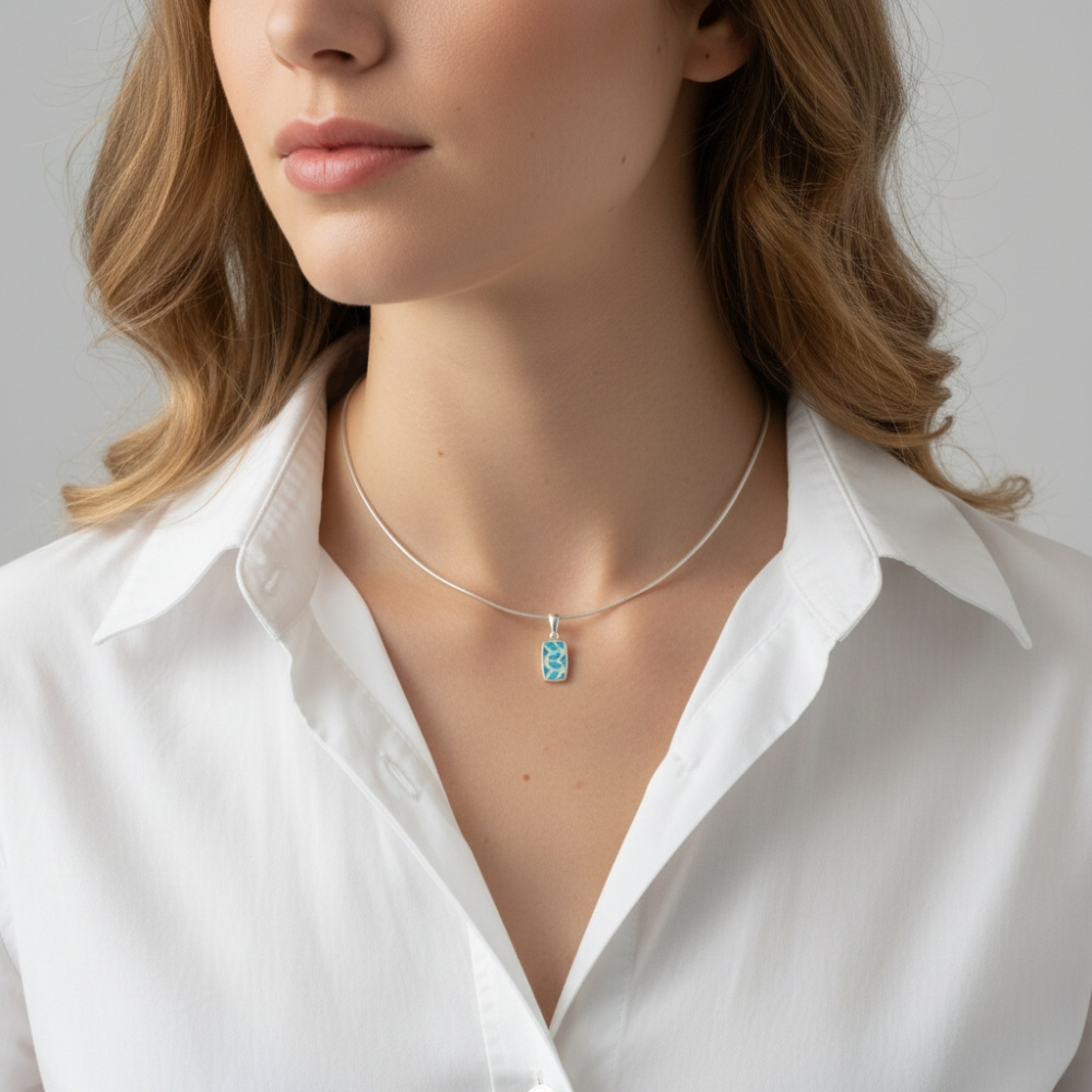 Bleue Pendentif Argent 925 Nacre Bleue