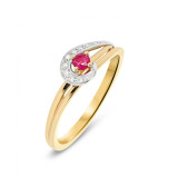 Bague en Or jaune et Or jaune rhodié sertie d'un Rubis rond de 3mm de diamètre de 8 diamants